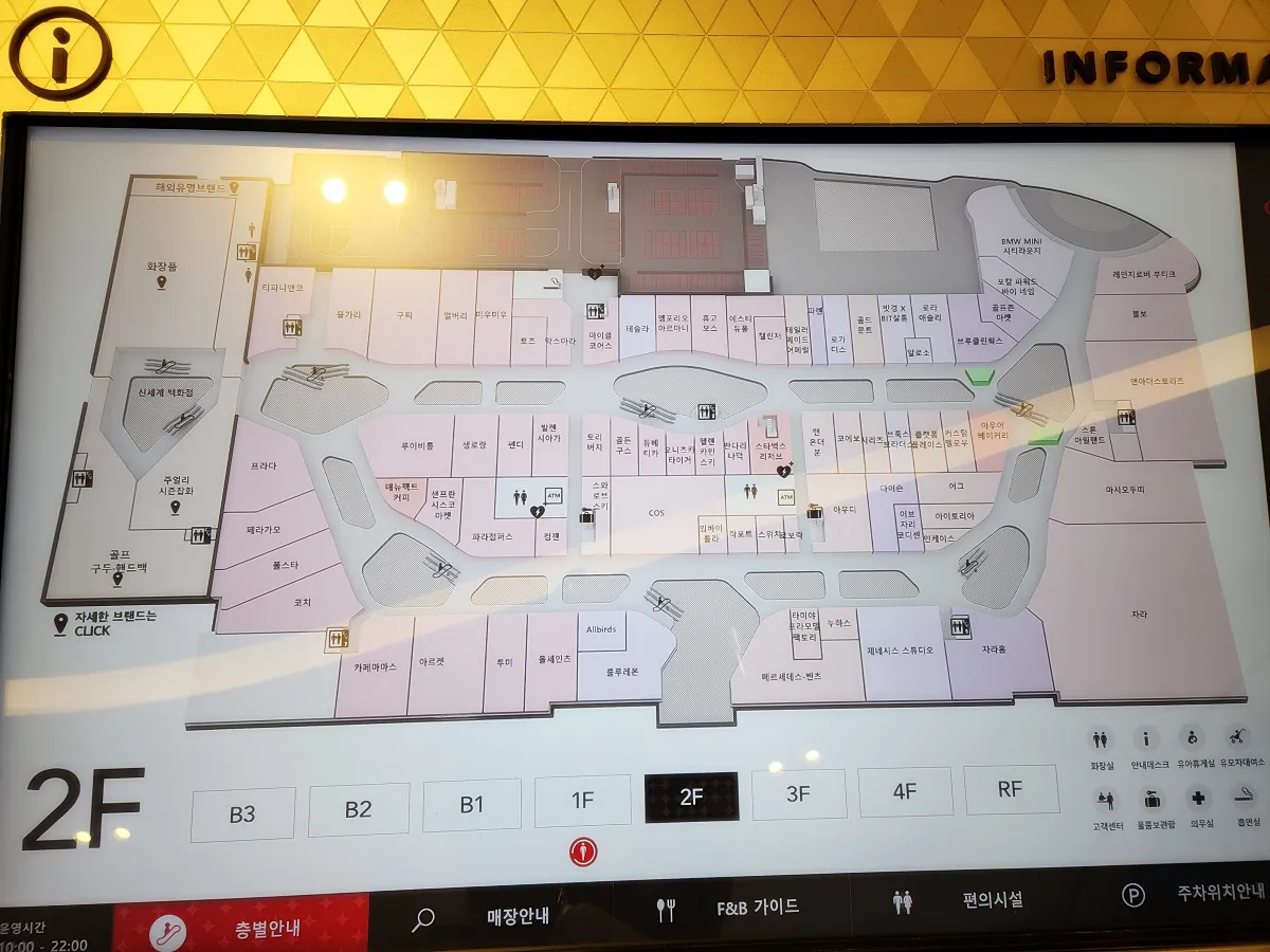 2층엔 자라가 크게 위치하고 있고 프라다, 페라가모, 폴스타, 코치 등 명품 매장도 있네요.